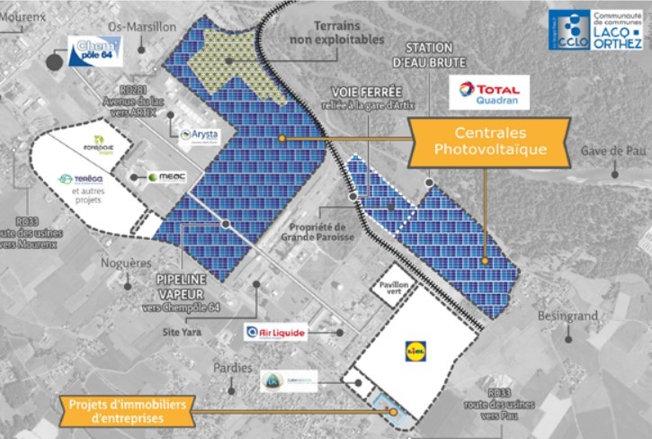 La Communauté des Communes de Lacq-Orthez s’est rendue propriétaire de l’ensemble des hectares disponibles sur cette plate-forme afin de faciliter l’installation de futurs projets.