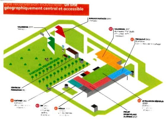 - Espace de tri, réutilisation et revalorisation sur place - Un campus "valorizon" comprenant un espace de formation et une pépinière d'entreprises de l'ESS
