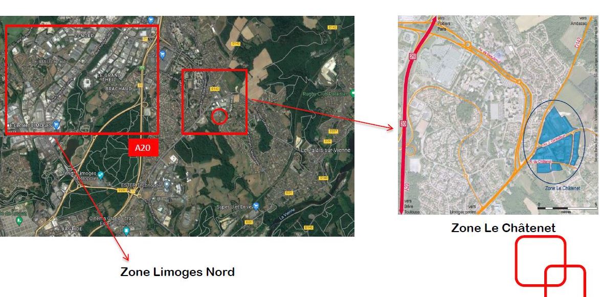 - Zone d'activité dans l'agglomération de Limoges (bureaux + zones de stockages + parking)
