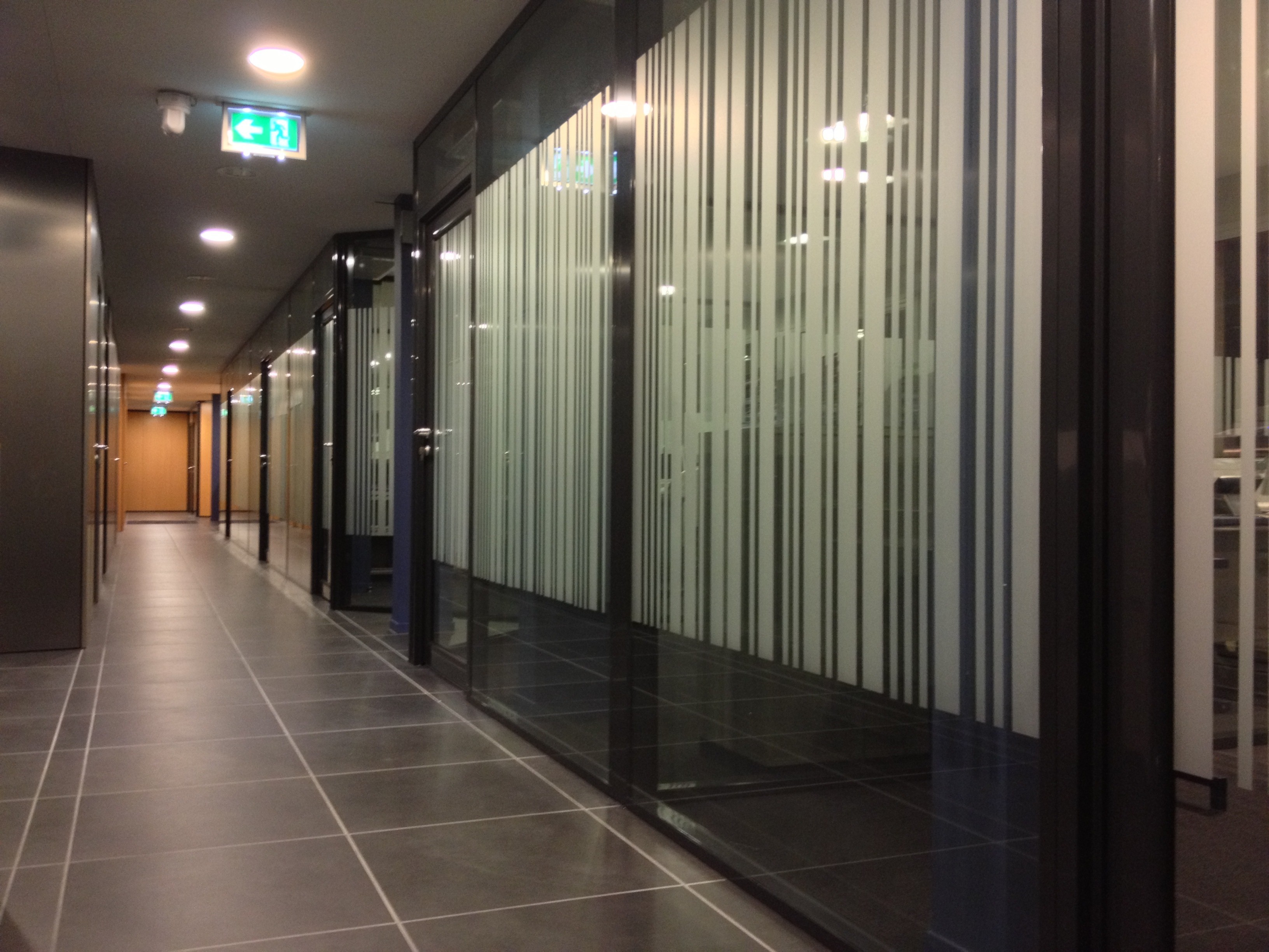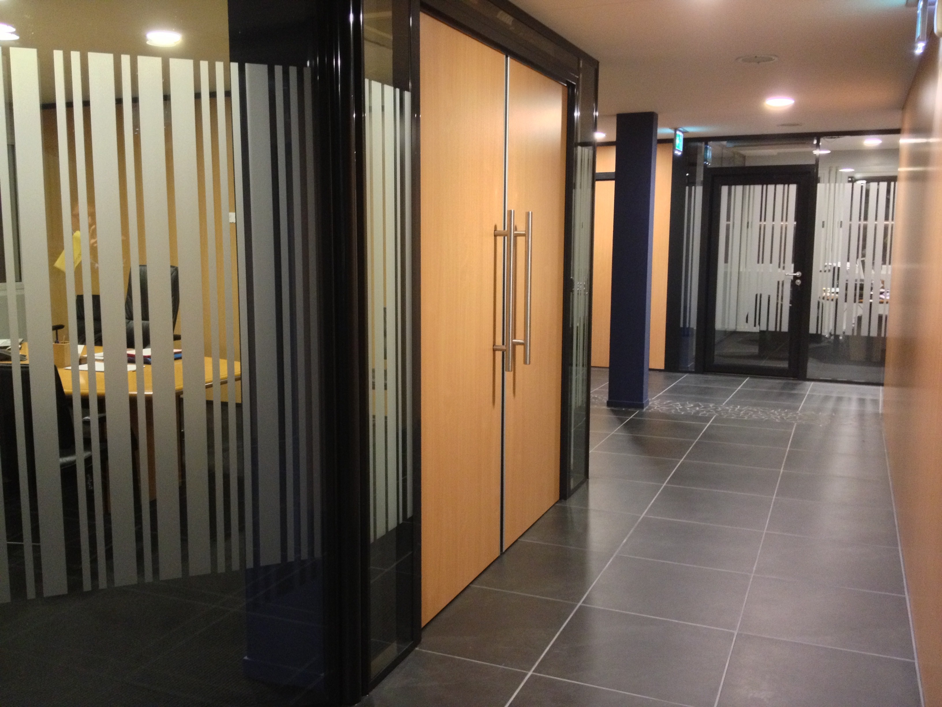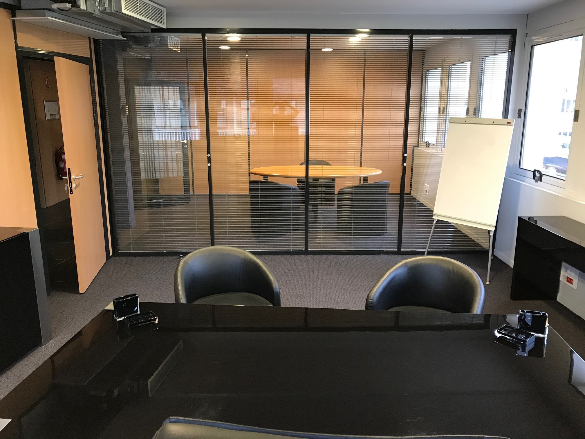- Cloisons vitrées avec isolation acoustique renforcée entre chaque bureau pour améliorer la confidentialité des échanges.