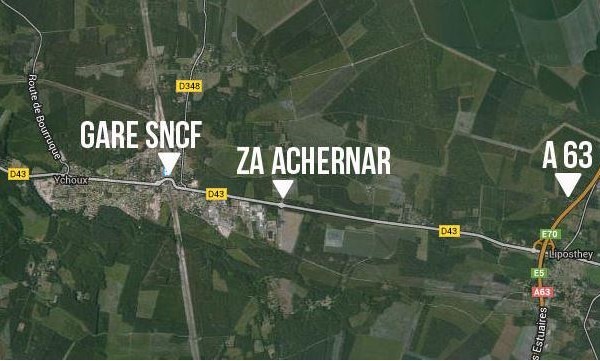 Les terrains bénéficient d'une situation géographique privilégiée en raison des nombreuses voies de communication avec notamment la RD 43 à proximité immédiate de l'échangeur A 63, et aussi la RN 10 (liaison Paris/Bordeaux/Bayonne).