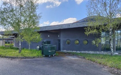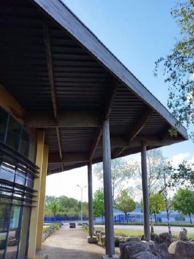 De forme circulaire, le bâtiment inspire l’accueil et la convivialité. Une large entrée abritée d’un auvent de forme triangulaire donne du dynamisme à l’ensemble.