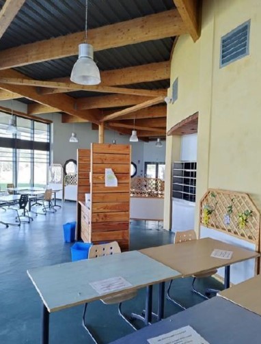 Le bâtiment est organisé autour d’un grand espace ouvert constituant une salle de réception, largement vitrée avec une grande hauteur sous plafond, ainsi que, sur son pourtour, des espaces aménagés pour une cuisine centrale comprenant : cuisine, espace de service, laverie, garde-manger, chambres froides positives et négatives, vestiaires, bureaux etc.