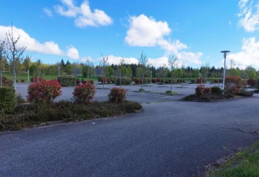 A l’arrière du bâtiment, un vaste parking d’une surface de 13 193 m², aménagé et bitumé permet d’accueillir jusqu’à 410 véhicules.