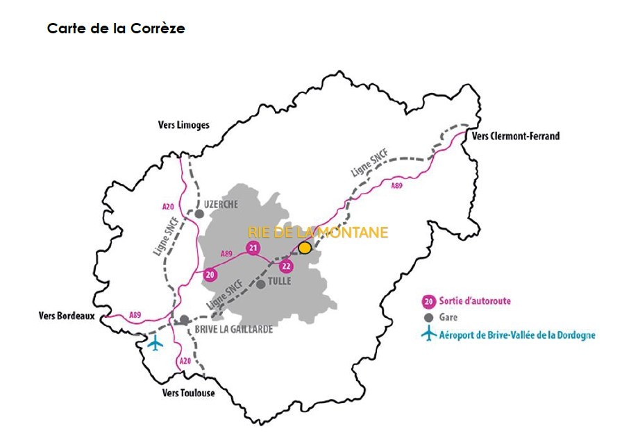 A 4mn de l'autoroute A89 : Bordeaux - Lyon et à 15 mn de Tulle