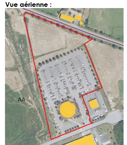 A l’arrière du bâtiment construit de 951 m², un vaste parking d’une surface de 13 193 m², aménagé et bitumé permet d’accueillir jusqu’à 410 véhicules.
