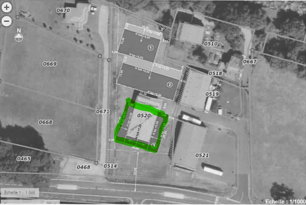 Un parking de 750m2 fait face à la CD936 avec 1 sortie directe. un compteur eau et électricité seront dédiés aussi à ce bâtiment qui sera indépendant.
