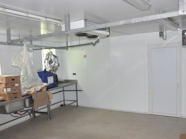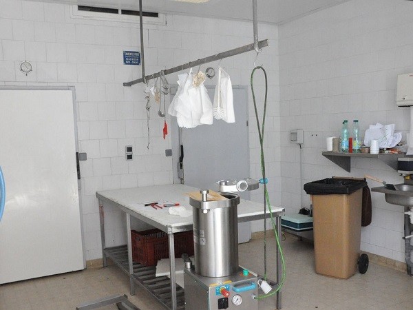 Laboratoire aux normes européennes climatisées : salle de découpe, salle de transformation, de cuisson et de préparation. Dépendances, pièces de stockage et cour.