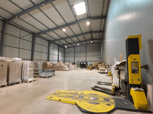 Bâtiment composé d'un dépôt racké, de trois quais niveleurs, de portes sectionnelles et d'une rampe d'accès. Attenant à celui-ci se trouve un espace bureau