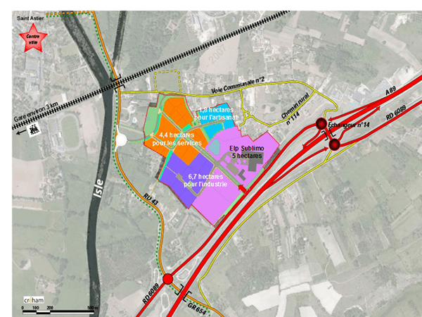Les terrains sont idéalement situés entre l’échangeur 14 (gratuit vers Périgueux) de l’autoroute A 89 (la Transeuropéenne), et le centre ville de Saint-Astier.