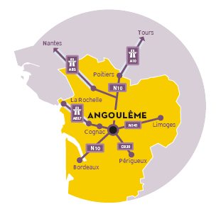 La zone d'activité se situe à 20 min d'Angoulême, 1h30 de Bordeaux, 1h15 de Poitiers.