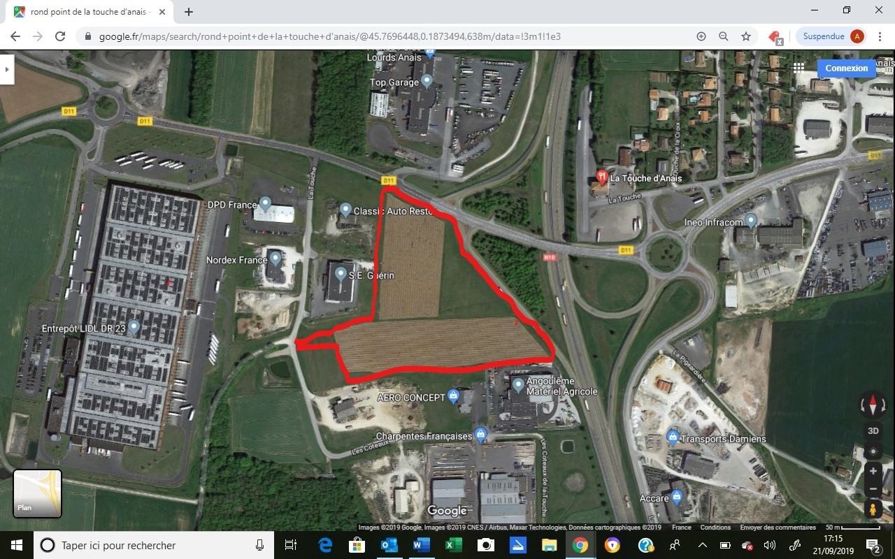 Ce terrain se situe le long de la N10 Bordeaux-Paris dans la Zone d'Activités des Coteaux de Vars qui est à proximité d'Angoulême.