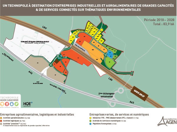 Présentation des terrains disponibles pour les entreprises au sein de la Technopole Agen Garonne, idéalement destinés aux secteurs industriel et agroalimentaire et axés sur des thématiques environnementales. La Technopôle Agen Garonne est une destination privilégiée pour les entreprises industrielles et agroalimentaires à grande échelle. Elle offre un environnement favorable pour les entreprises qui cherchent à s'établir dans une zone qui valorise les innovations dans ces secteurs clés. Au sein de la Technopôle Agen Garonne, un accent particulier est mis sur les thématiques environnementales. Nous favorisons les entreprises qui adoptent des pratiques durables et respectueuses de l'environnement, créant ainsi un espace où l'innovation et la durabilité vont de pair. En plus de fournir des terrains pour les entreprises, la Technopôle Agen Garonne offre également une gamme de services connectés. Ces services permettent aux entreprises de rester à la pointe de la technologie tout en favorisant la collaboration et l'efficacité. Investir dans un terrain à la Technopôle Agen Garonne offre aux entreprises une opportunité unique de faire partie d'une communauté dynamique d'innovateurs et de leaders du secteur. Profitez de cette occasion pour placer votre entreprise à l'avant-garde des secteurs industriel et agroalimentaire. Si vous êtes intéressé par nos terrains pour entreprises à la Technopôle Agen Garonne, veuillez nous contacter. Notre équipe se fera un plaisir de discuter des options disponibles et de vous aider à choisir l'emplacement qui convient le mieux à vos besoins et à vos objectifs commerciaux. Terrains pour entreprises à la Technopole Agen Garonne